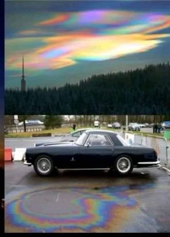 If a chemical is spilt on the floor and water is added it creates the amazing array of colours – this is also happening in our skys above us.. but not spilt.. but purposefully placed.. !!